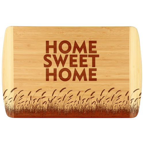 Bring Home with you with our Home Sweet Home and grass cutting board. Genuine bamboo cutting board with Home Sweet Home design is a great idea for a gift or for your own use. Two-toned bamboo cutting board that is laser engraved with your custom information. Choose from two different sizes. Both sizes are 3/4" thick.