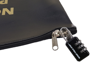 Large 10" x 14" Lockable black zippered supplies bag holds all of your notary supplies, including the Professional Notary Records Books, seals and stamps..