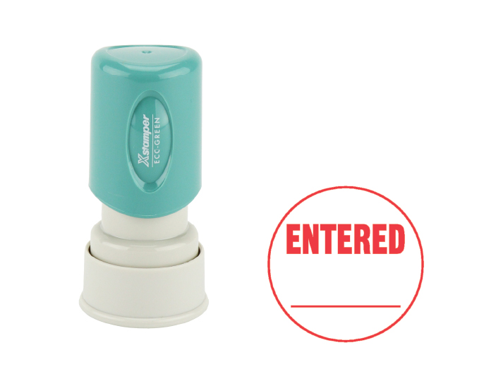 The Xstamper Entered stock title stamp will make a great addition to any office or home. This two-color stock stamp allows you to mark documents easily and efficiently. The stamp is re-inkable with oil based Xstamper ink. Generally ships out the same day.